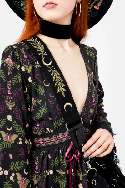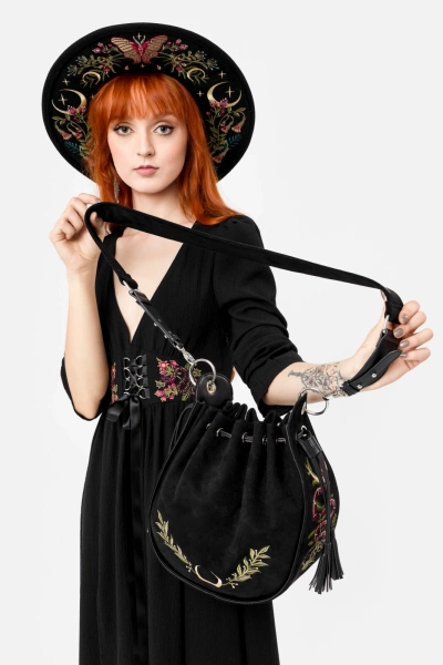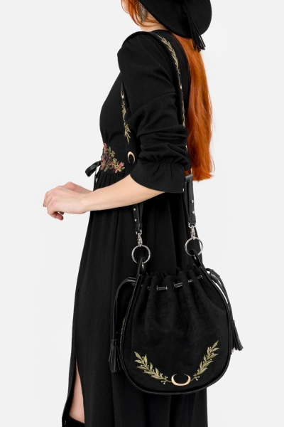 Wąż wijący się wśród paproci, księżyce, liście – wszystko wyhaftowane z niesamowitą dbałością o każdy szczegół. Mroczna, magiczna i pełna symboliki. Jeśli kochasz leśną dzikość, pokochasz tę wyjątkową torebkę!