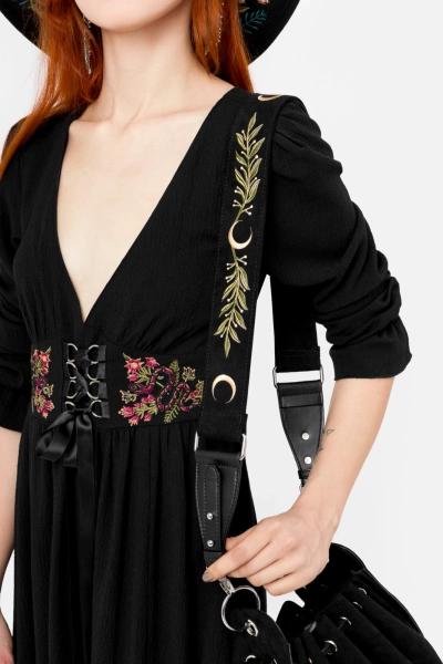 ✦ przód zdobiony przepięknym, botanicznym haftem liści i księżyców