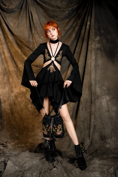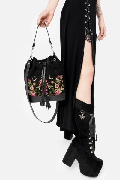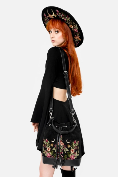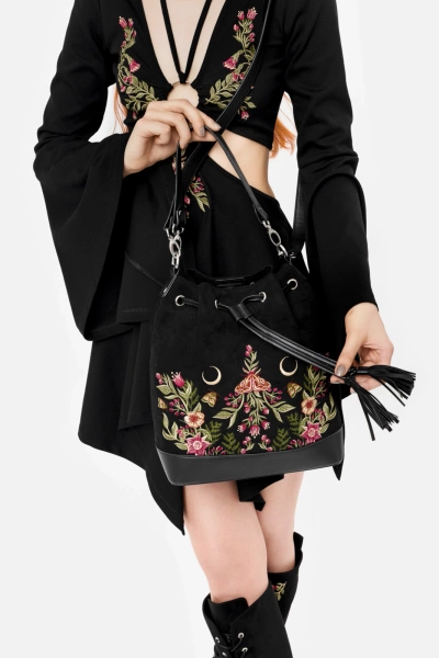✦ piękny, misterny haft z motywem ćmy i dzikich roślin z przodu torebki