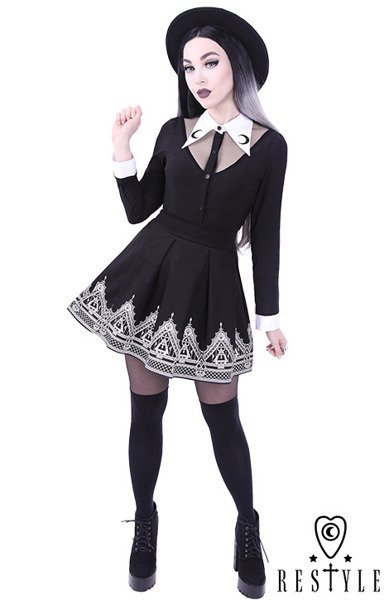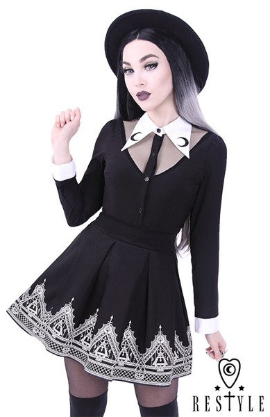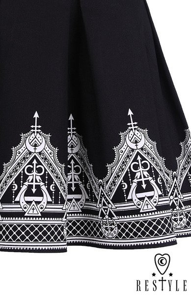 Wzór zawiera alchemiczne symbole, księżyce i motywy koronkowe.