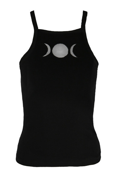 T-shirt bez nadruku z wycięciem na biuście w kształcie faz księżyca.