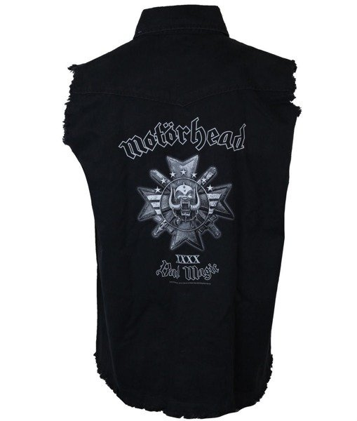 Cechy kamizelki: - kolor CZARNY, - wykonana jest ze 100% wysokogatunkowej bawełny. Bawełna jest gruba, mięsita, wysokiej jakości i odporna na niszczenie, w strukturze przypomina jeans, - kołnierz, - efektowne, postrzępione wykończenia na rękawach i u dołu, - zapinana jest z porzodu na czarne, metalowe zatrzaski, - z tyłu duży wysokogoatunkowy nadruk – tzw. „ekran”, - z przodu na lewej piersi, logo MOTÖRHEAD, - z przodu na prawej piersi kieszeń zapinana na czarny, metalowy zatrzask. Wszystkie produkty, w tym nadruki, hafty i naszycia są dziełem RAZAMATAZ (tylko brytyjsko-europejskie rączki biorą udział w produkcji).Kupiłeś ten produkt? Podziel się opinią, dodaj zdjęcie i zgarnij 3 pkt.