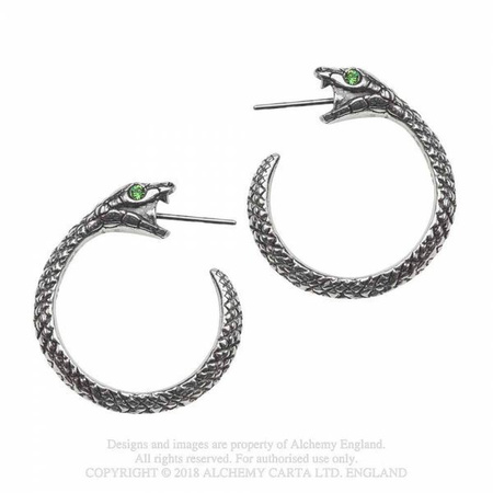 Kolczyki zapakowane w oryginalne opakowanie Alchemy z gwarancją i instrukcją pielęgnacji (ang).