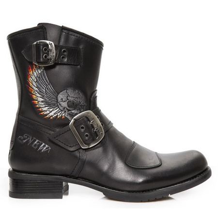 Dostawa butów jest prosto z Hiszpanii z magazynu producenta, firmy NEW ROCK. Paczkę dostarczy firma kurierska UPS/DPD. Standardowe wzory dostarczane są w terminie od 5 do 10 dni od zaksięgowania wpłaty na konto metalRoute. Wzory robione na specjalne zamówienie, wysyłane są do 45 dni roboczych. Buty NEW ROCK, to hiszpańskie pochodzenie za którym stoi 90 lat tradycji i doświadczeń. NEW ROCK to bezdyskusyjny światowy lider i kreator mody rockowej i metalowej. NEW ROCK specjalizuje się głównie w butach rockowych i metalowych, ale ich asortyment jest dużo większy i znacznie wykracza poza NADZWYCZAJNE BUTY. Najwyższa światowa jakość produktów NEW ROCK, ale co i mega ważne niepowtarzalny, często futurystyczny i nie do podrobienia styl i design. Sklep rockowy metalRoute gwarantuje ich oryginalność i pochodzenie. Jednym z credo producenta NEW ROCK to zgodność z naturą - dlatego buty NEW ROCK zrobione są w całości z naturalnych komponentów, w tym skóry, metalu, oraz gumy. Jednocześnie wprowadzane są nowoczesne rozwiązania, które gwarantują absolutny komfort i wygodę noszenia tych butów. Przykładowo każda para butów zawiera specjalną antybakteryjną i antyseptyczną wkładkę, która ma dodatkowo zdolność mega optymalnego dopasowania się do kształtu każdej stopy. Podeszwy wyposażone są w liczne komory powietrzne, które dodatkowo gwarantują komfort noszenia w każdych warunkach pogodowych, ale też znakomicie przedłużają czas życia butów i ich używania. Cechy i jakość butów: