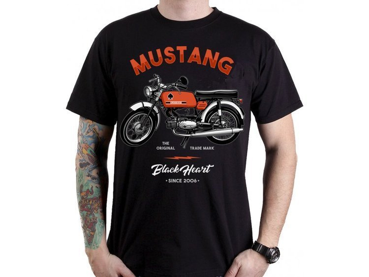 Jeżeli Twoje serce jest jednakowo motocyklowe, równie czarne, wbij się w koszulkę krótki rękaw BLACK HEART MUSTANG razem z Black Heart i metalRoute.