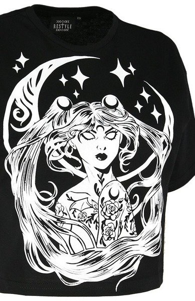 Grafika przedstawia mroczą czarodziejkę z księżyca. Ciało SAILOR MOON otulają długie jasne włosy, a tatuaże w róże i półksiężyce dodają tajemniczego charakteru. Za postacią widać półksiężyc i migoczące gwiazdy.
