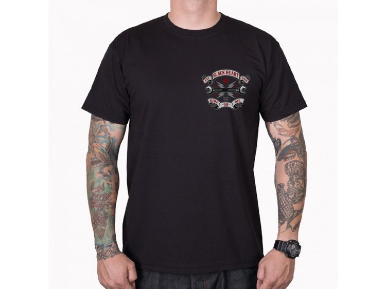 Jeżeli Twoje serce jest jednakowo motocyklowe, równie czarne, wbij się w koszulkę krótki rękaw BLACK HEART RIDE OR DIE razem z Black Heart i metalRoute.