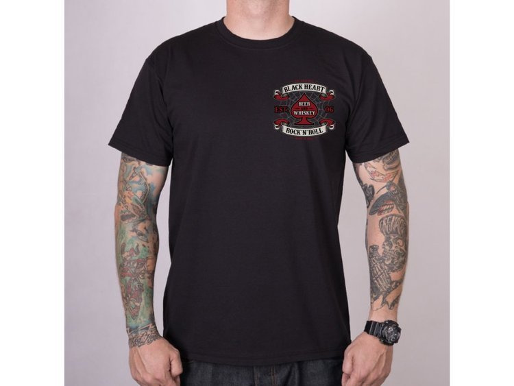 Jeżeli Twoje serce jest jednakowo motocyklowe, równie czarne, wbij się w koszulkę krótki rękaw BLACK HEART BEER AND WHISKEY razem z Black Heart i metalRoute.