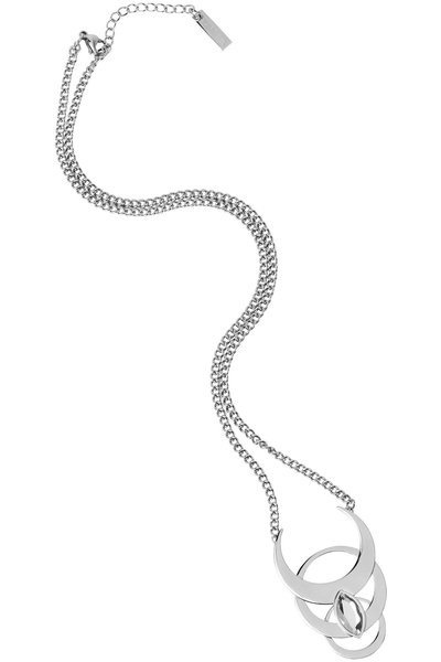 • Naszyjnik „Carmen” to wyrazisty półksiężyc z detalami z czystego kryształu i z długim srebrnym łańcuchem.