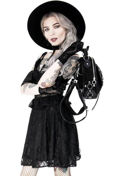 Gotycka sukienka w całości wykonana z czarnej, mocnej koronki. Materiał nie drapie i nie gniecie się. Wewnątrz dół wzbogacony czarną podszewką. Sukienka zapinana na zamek błyskawiczny. Doskonała zarówno na co dzień, jak i od święta. Dobierz do niej nasze rękawiczki i klasyczny kapelusz.