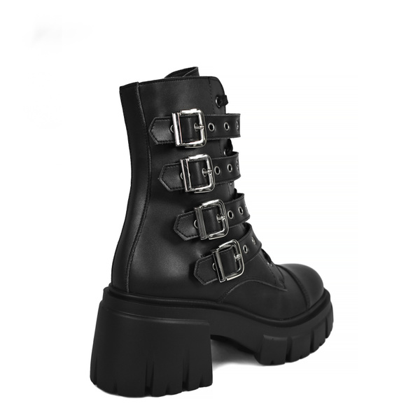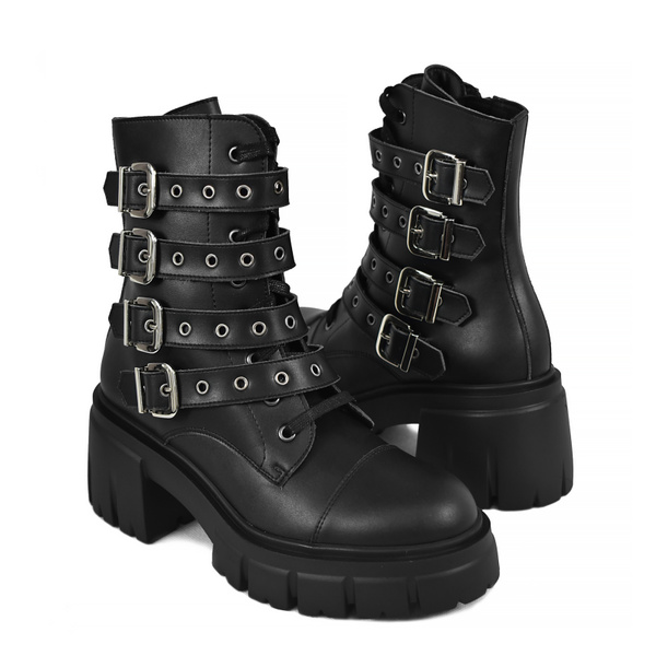 • Czarne, botki na obcasie, wykonane z wysokiej jakości wegańskiej skóry. Znakomite uzupełnienie rockowych stylizacji. Obcas 7 cm. Produkcja polska. Najwyższa jakość użytych materiałów gwarantuje długie używanie.