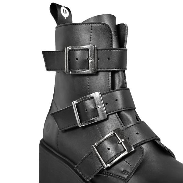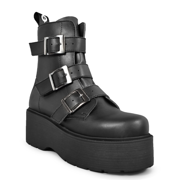 • Czarne, botki na platformie, wykonane z wysokiej jakości wegańskiej skóry. Znakomite uzupełnienie rockowych stylizacji. Podeszwa 6 cm. Produkcja polska. Najwyższa jakość użytych materiałów gwarantuje długie używanie. NOWA KOLEKCJA