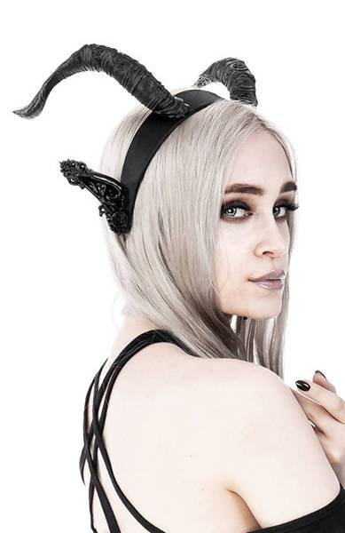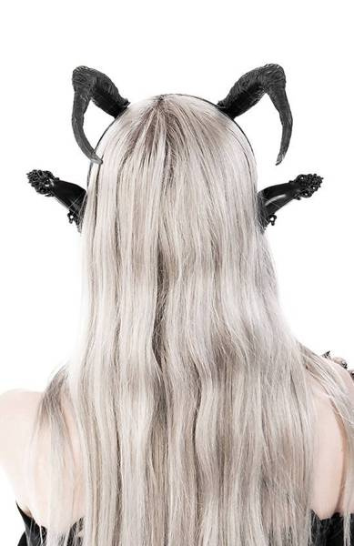 Czarna, gotycka opaska z rogami kozła i elfimi uszami przyczepionymi po bokach. Rogi w całości ozdobione wytłaczanym barokowo-księżycowym wzorem. Natomiast uszy elfa mają piękne, gotyckie zdobienia. Konstrukcja rogów została wykonana z solidnego, pustego w środku plastiku. Są przymocowane do opaski za pomocą śrubek. Od wewnątrz zabezpieczone miękkim materiałem, aby łączenie nie zahaczało o włosy.