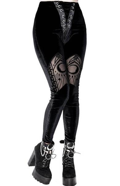 Gotyckie, aksamitne legginsy z siateczką we wzór fortune teller.