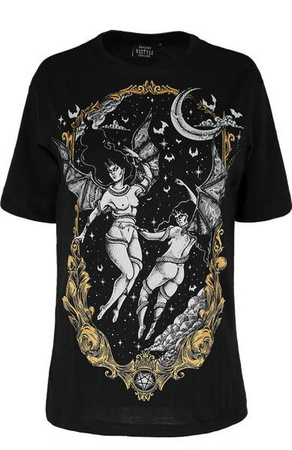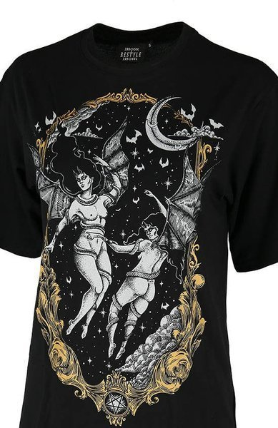 Czarny oversize’owy T-shirt z demonami succuby, sukkuby