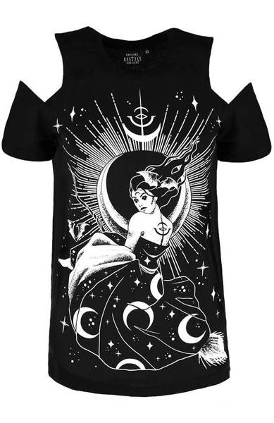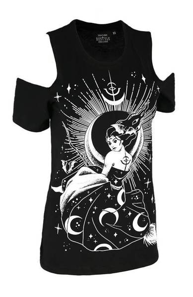 Gotycki T-shirt dopasuje się do kształtu Twojej sylwetki i będzie wygodny w noszeniu. Odsłonięte ramiona dodadzą Ci zadziornego looku. Miękki i komfortowy materiał sprawi, że w koszule poczujesz się jak w drugiej skórze.