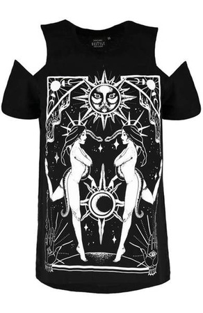 Jeśli wybierasz się na coven to załóż na siebie w naszą koszulkę! Wykonaną z mocnej dzianiny o gęstym splocie, która przetrwa każde spotkanie – nie tylko to online. Nadruk wykonany metodą sitodruku, dzięki czemu jest odporny na wilgoć, uszkodzenia mechaniczne czy wielokrotne pranie (pamiętaj – pierz zgodnie z instrukcją na metce). Wycięcie typu cold shoulder wyeksponuje Twoje ramiona i podkręci stylizację. Dopasowany fason podkreśli sylwetkę i jednocześnie sprawi, że będzie się wygodnie nosił.