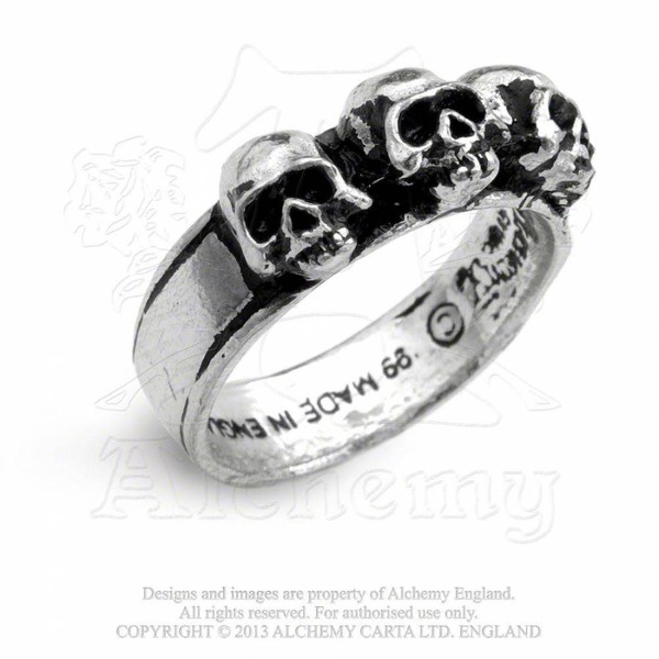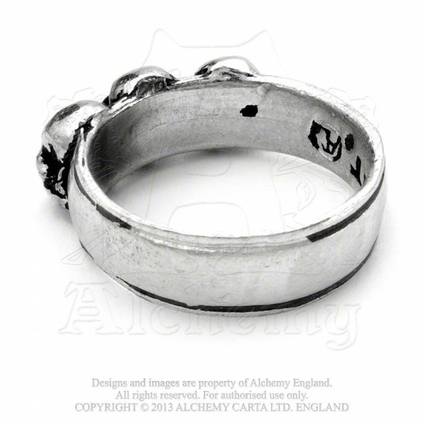 Wąska obrączka z rzędem trzech małych czaszek z przodu. Mały kawałek mroku w sercu