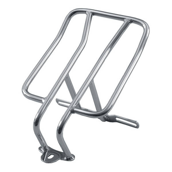 Chrome. Mounts to mounting holes of license plate bracket and seat. Maximum load 10lbs (4.5 kilo). Approx. dimensions: 8" long x 6" wide
