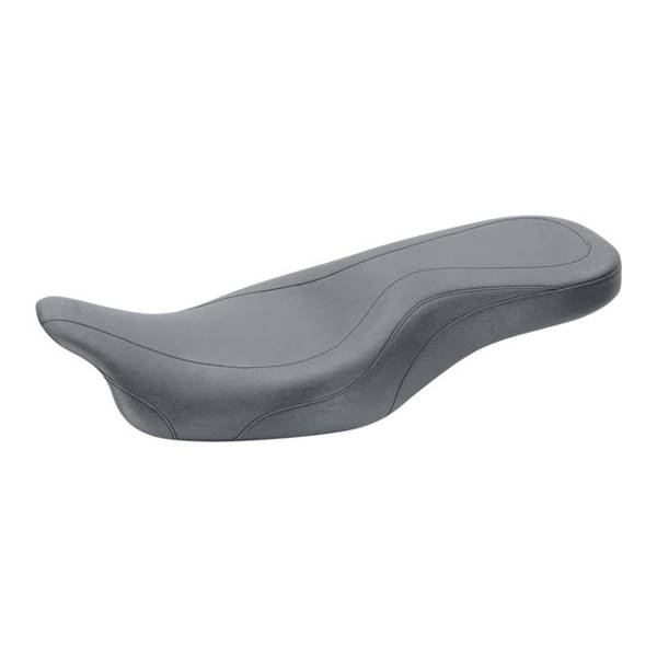 Black. Front 14" wide & rear 11" wide. Detailed stitch work in a highly durable synthetic glove-leather cover. Nicely flowing low profile contours blend into the lines of the bike that makes you wonder if maybe the bike was designed after the seat. Shorter rider will value the low seating height for its functionality, taller riders will value it for its low profile. Note: Sizes given in inches are rider & passenger seat area widths.