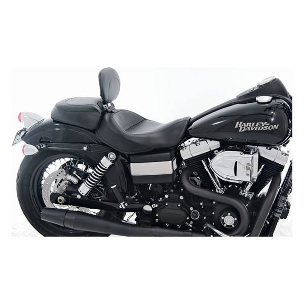 Plain black. 12.5" wide. With recess for solo seat with rider backrest. Note 1: Mustang solo seats & passenger seats cannot be mixed with OEM solo or passenger seats. Note 2: Solo seats with a rider backrest require a recessed passenger seat, the recessed section provides the necessary space for the rider backrest.