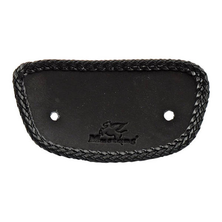 Black. Approx. dimensions 6.75" wide X 3.5" long. Fender bibs are to be used with solo seats. Contoured to hug the fender, without gaps around the edges. All come with braided edges and are soft felt-backed to help prevent paint damage. Shows the rear fender but hides the stock solo seat washers. Fits all models that have a stud plate, like Road King, FL & FX Springers, Deluxe and Heritage Classic. Note: Fits all brands solo seats.