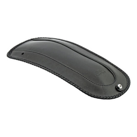 Black. 5.75" wide x 14.5" long. Fits STD tire models with the stud plate in the fender. Fender bibs are to be used with solo seats. Contoured to hug the fender, without gaps around the edges. All come with braided edges and are soft felt-backed to help prevent paint damage. Note: Fits all brands solo seats.