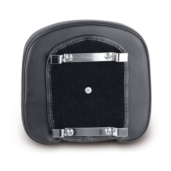 Distressed black. Diamond stitch pattern. Will fit all H-D and aftermarket sissy bars/uprights with a welded insert plate. Comes with a carpeted back. Approx. dimensions: 9" (22.9cm) high x 9.5" (24cm) wide. Note: These 9" high pads have a threaded center hole for blind mounting, plus the optional top bracket. Note: Not recommended for H-D low and Mini sissy bars/uprights.