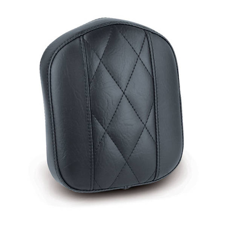 Distressed black. Diamond stitch pattern. Will fit all H-D and aftermarket sissy bars/uprights with a welded insert plate. Comes with a carpeted back. Approx. dimensions: 9" (22.9cm) high x 7.5" (19cm) wide. Note: These 9" high pads have a threaded center hole for blind mounting, plus the optional top bracket. Note: Not recommended for H-D low and Mini sissy bars/uprights.