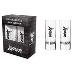Licensed, shots of metal band VENOM, from the British king of merch, RAZAMATAZ company. The highest quality product. Capacity 60 ml. Height 9,5 cm, diameter: 3,2 cm. It can be washed in a dishwasher. Special branded safe cartons with the image of a band.