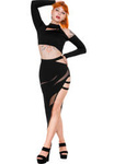 Gothic, dark dancer pencil side slit skirt. Asymmetric high waist skirt. The unique translucent cutouts give the skirt an extraordinary gothic flair. An another original cutout on the hip The icing on the cake are the two thigh stripes that catch the eye