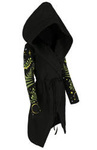 Gothic, long, black robe hoodie. Made of very thick, knitted cotton with velvet finish. Very warm and super soft inside. It has huge, oversized hood with a big, realistic fern embroidery. 2 big hand-pockets are on the sides. Can be wear as an outwear.