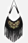 Faux suede lace up crop top with floral cutwork embroidery