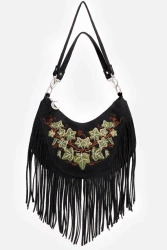 Black velvet halterneck top with floral & moth embroidery