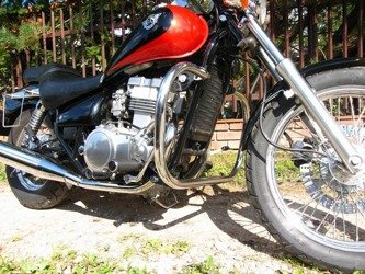 Classic chromed front engine guards. Galvanic cover: copper, nickel, chrome. Made of precision steel pipe: Ø 32 mm, thickness of 2.5 mm. Width approximately 75 cm. One-piece construction.