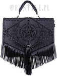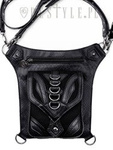 Round bag, made of solid, black faux leather. Inside there is black , soft lining with two pockets (open and zip). Handles with carabiners clips allow to carry bag on the shoulder. Diamater: 30 cm. Side width: 11 cm. Handles: 40cm. Lenght arm strap: 120cm
