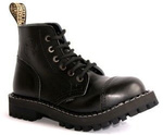 Middle high 8-eye BLACK boots, so called "steel caps", made of natural cowhide. Polish production. Triple seams. Screwed, rubber outsole. Steel reinforcements in the toes of the shoes. The highest quality of materials and workmanship guarantee long usage,