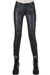 Classic skinny-fit body featuring a soft-stretch fabric-blend for a flattering and comfortable fit. Featuring a statement coating throughout, 5-pocket styling with stud + zip front and pentagram accent detail. 77% Rayon, 20% Nylon, 3% Elastane. Wash Cold.