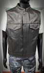 Motorcycle vest made of high-quality impregnated thick cowhide. Perforated lining. YKK zippers and press studs. 2 outer pockets, and 2 internal ones additionally fastened with zips. The vest is zippered, tied and adjusted on the sides with leather straps.