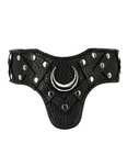 The impressive gothic COLLAR MOON HARNESS. It is made of artificial leather. It has a characteristic hoof shape that will be super comfortable for your neck. It has an adjustment at the back. Circumference 33-42 cm.