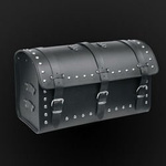 Skórzany kufer motocyklowy polskiej firmy TARBOR. Wykonany z wysokogatunkowej skóry bydlęcej licowej 2,5-3,0 mm. Spód kufra wzmocniony blachą. Zamykany na pasy skórzane. Posiada boczne zewnętrzne kieszenie. Wykończenie nierdzewnymi puklami.