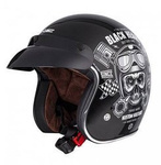 Markowy kask od Black Heart. Świetny na chopper, cruiser czy bobber. Homologacja ECE 22.05. Zdejmowany daszek. Uchwyt do mocowania gogli. Skorupa z ABS/poliwęglanu. Waga:1200 g. Chromowane wykończenia. W komplecie torba na kaski Black Heart na ramię.