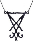 Wisior przestawia nietoperza ozdobionego koronką w alchemiczne symbole. W centrum znajduje się duży półksiężyc, na dole siateczka i wycięte księżyce. W zestawie regulowany łańcuszek. Wymiary: