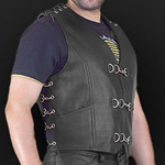Kamizelka motocyklowa z wysokogatunkowej grubej skóry bydlęcej - 1,3 mm. Zapinana jest na 4 guziki. Kamizelka wiązana i regulowana jest po bokach skórzanymi rzemieniami . Do noszenia na kurtkę, na koszulkę lub bezpośrednio na ciało.