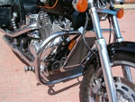 Klasyczne chromowane gmole przednie do HONDA VT 1100 SHADOW SPIRIT (SC18). Wersja EXTRA z oszlifowaniem spawów i połączeń. Szerokość ok 70 cm. Wykonane z precyzyjnej rury stalowej o średnicy 32 mm i grubości 2,5 mm. Konstrukcja jednoczęściowa.
