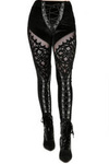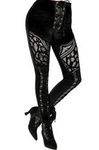 Gotyckie, aksamitne legginsy z siateczką we wzór koralików. Ultrakobiecy i wygodny element stylizacji. Gorsetowe sznurowania ze sztucznej skóry. Wykonane z czarnego, aksamitnego materiału. Skład: aksamit i siateczka (100% poliester)