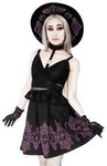 Gotycka sukienka i tunika.Taliowany krój podkreślający sylwetkę,elementy z gipiury i efektowne rękawy. Odcinana pod biustem. Głęboki dekolt w serek obszyty delikatną gipiurą i wykończony wstawką z pentagramem. Rozszerzany rękaw, zakończony koronką wenecką