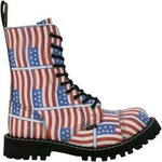 Średnie, 10-dziurkowe FLAGA US glany ze skóry naturalnej bydlęcej licowanej. Produkcja polska. Najwyższa jakość wykonania i materiałów. Potrójne szwy, śrubowana podeszwa LUG, stalowe wzmocnienia w czubkach butów. Gwarancja długiego i wygodnego używania.